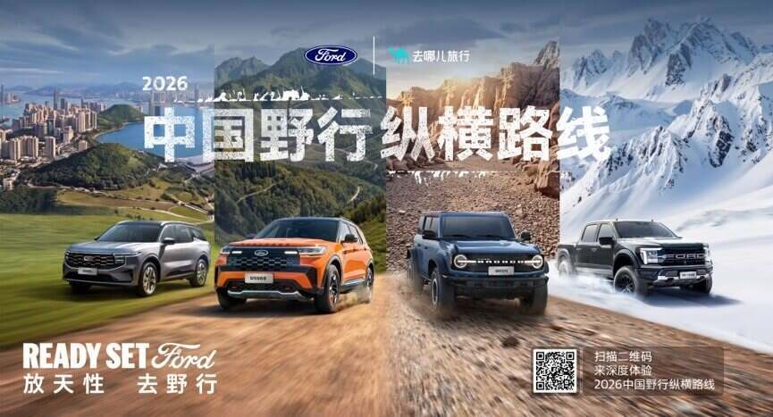 為了讓更多用戶輕松體驗“放天性,去野行”的理念,福特攜手去哪兒旅行網,針對4-10月的黃金出行期,重磅推出了“2026中國野行縱橫路線”。四條定制路線體驗,精準對應“四級野”產品場景。你可以在F-150猛禽的帶領下穿越可可西里無人區,成為荒野的守護者;借助福特烈馬/游騎俠卓越的性能挑戰庫布齊沙漠的沙丘,打卡烏蘭哈達火山;憑借福特探險者/福特智趣烈馬舒適又不失強悍的綜合性能穿越南疆,在喀班巴依峰腳下床車露營;也可以帶上全家,和福特銳界L/領裕一起體驗“中國最美峽谷公路”怒江大峽谷沿途的奇景。福特將車輛性能與在地文化完美融合,真正做到了“車在景中等,你只管來玩”。