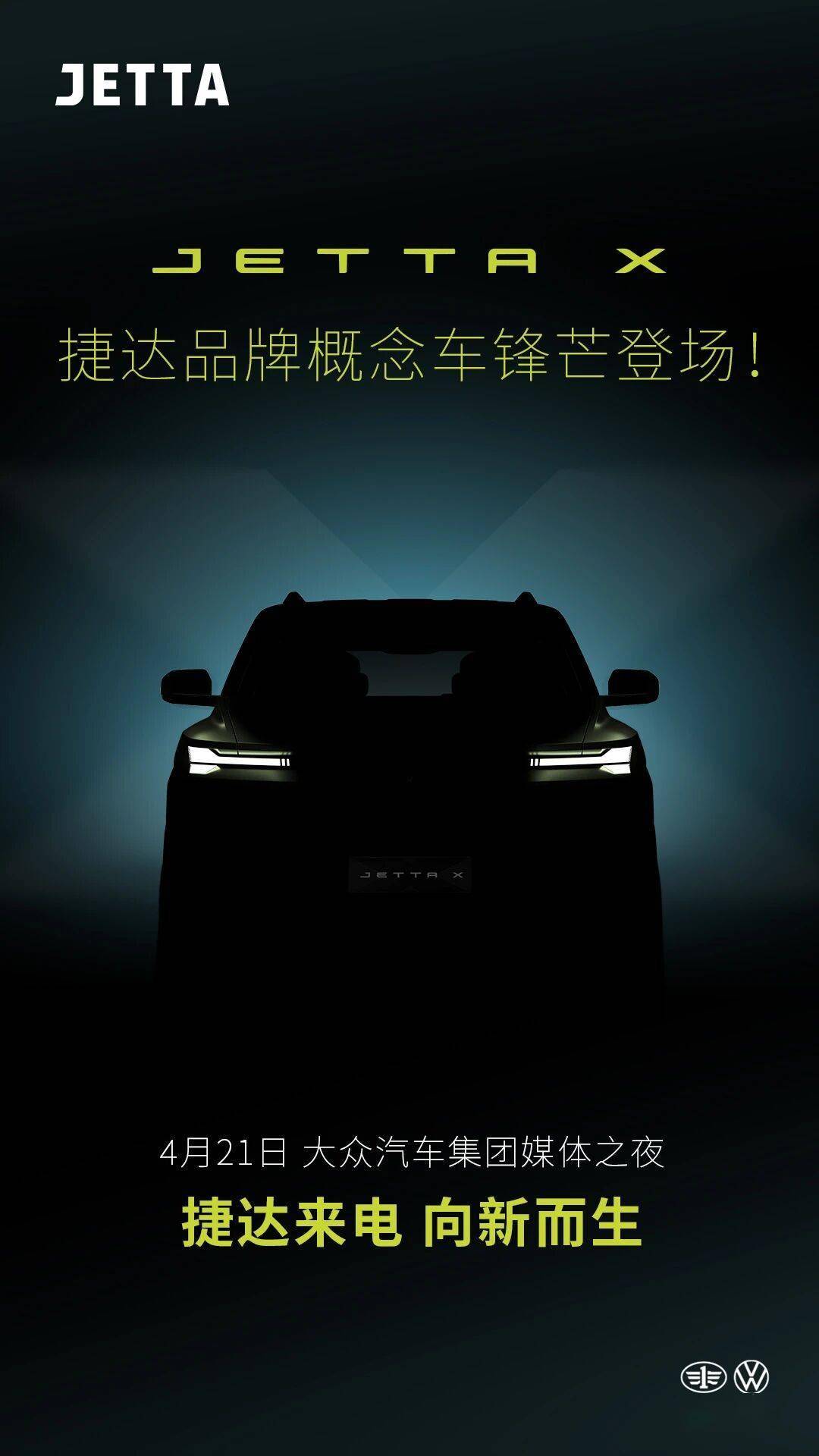 一汽-大眾旗下捷達(dá)品牌即將迎來重要里程碑——其全新概念車JETTA X將于4月21日大眾汽車集團(tuán)媒體之夜活動(dòng)中揭開面紗。從官方發(fā)布的預(yù)告圖輪廓推測(cè),這款車型或定位為SUV或跨界車型,動(dòng)力系統(tǒng)將采用電動(dòng)化方案,但具體是純電動(dòng)還是插電式混合動(dòng)力尚未明確。