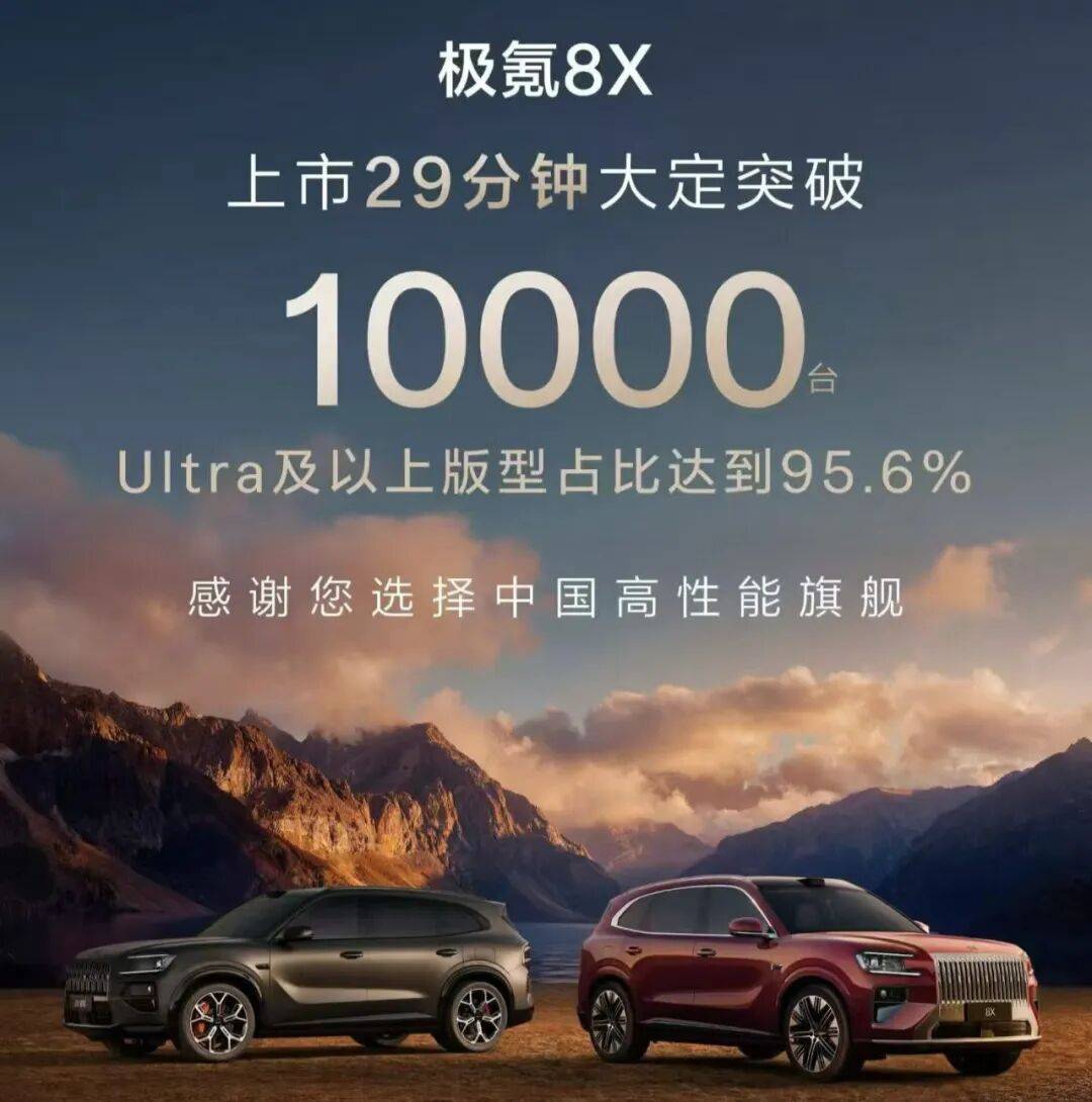 4月17日上市的極氪8X進(jìn)一步拓展高端性能市場(chǎng)邊界。這款定位高性能大五座旗艦SUV的車型,限時(shí)售價(jià)32.98萬(wàn)-39.98萬(wàn)元,曜影版達(dá)47.38萬(wàn)元。上市29分鐘即斬獲萬(wàn)輛訂單,其中Ultra及以上車型占比95.6%,平均價(jià)格超40萬(wàn)元。該車直接對(duì)標(biāo)寶馬X5M、奔馳AMG GLE等百萬(wàn)級(jí)豪車,卻以"8系"之名實(shí)現(xiàn)"9系"配置——全棧900V高壓架構(gòu)、三電機(jī)兆瓦級(jí)電驅(qū)、4S級(jí)AI數(shù)字底盤等10余項(xiàng)行業(yè)首創(chuàng)技術(shù),重新定義新能源豪華性能標(biāo)準(zhǔn)。